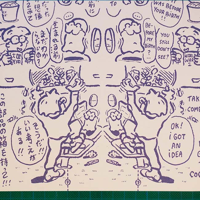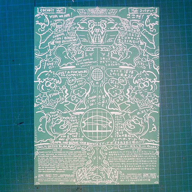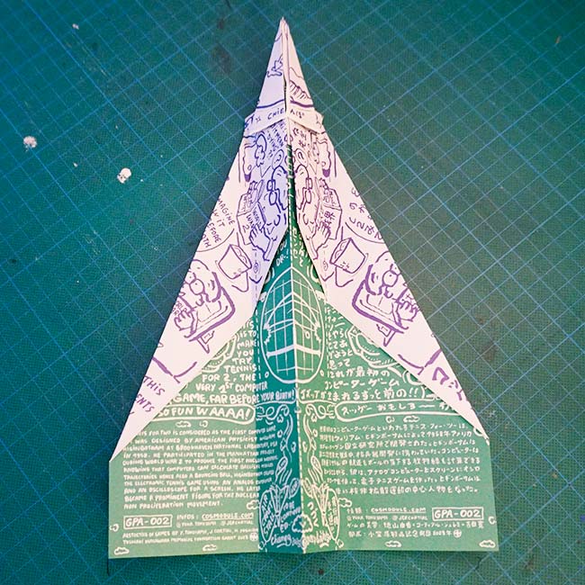 Game Play Airlines is a bilingual, symetric, psychedelic A4 comic foldable into a paper plane. It was designed as a summary of Yuka Tokuyama and Jérémie Cortial researches about games and art, developped in a serie of conferences titled “aestethics of games“, held in Tokyo, Osaka, Hambourg and Tallin.